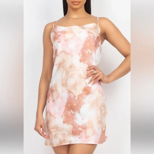 "Radiant Overflow” Cowl Neck Satin Dress